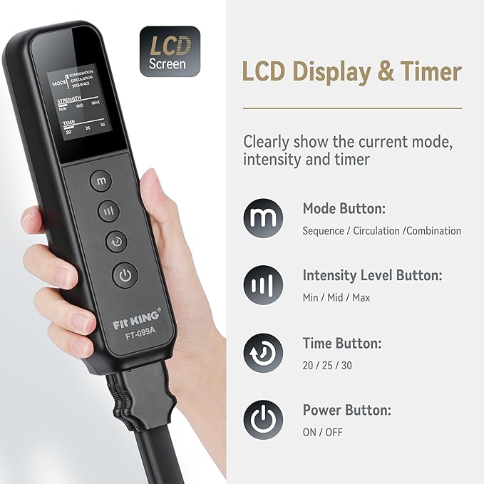 FIT KING Air Compression Leg and Foot Boots Massager for Circulation from Foot to Thigh to Relieve Pain, Swelling, Edema - Pressure Sensor & LCD Display & 3 Timer Optional