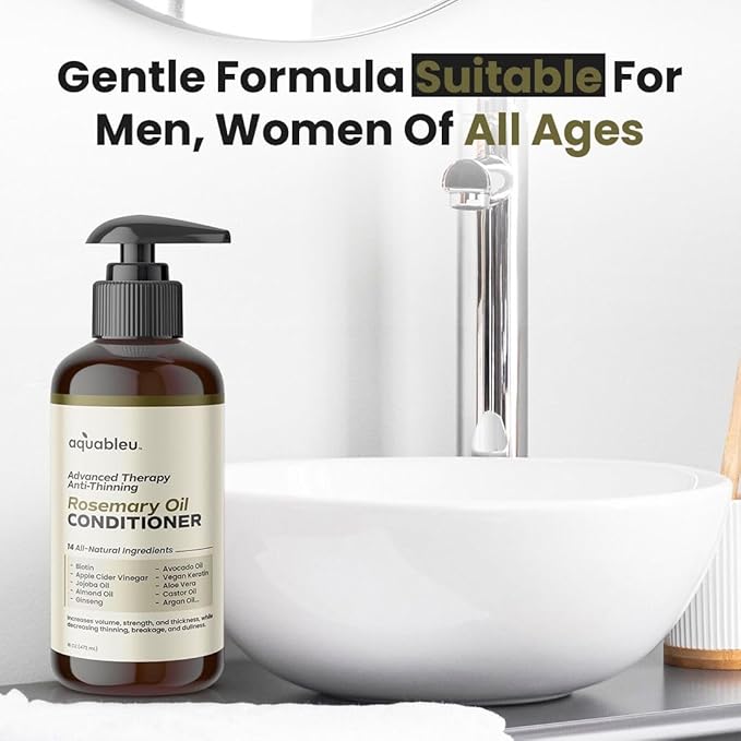 - Transformative Power of Nature: Elevate your hair care routine with Aquableu Advanced Therapy Anti-Thinning Rosemary Oil Conditioner, and experience the beauty of stronger, thicker, and more vibrant locks.