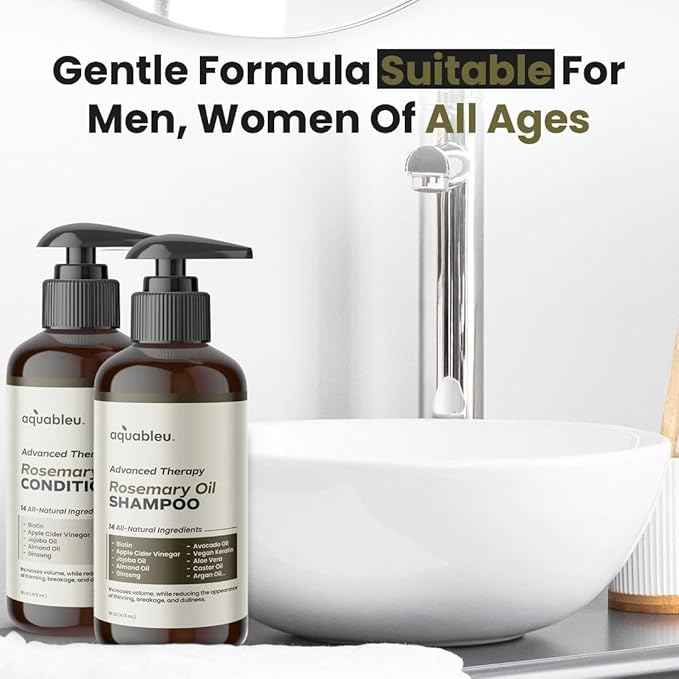 Advanced Therapy Anti-Thinning Rosemary Oil Shampoo & Conditioner Set - Infused with 14 All-Natural Ingredients for Volume, Strength, Thickness, and Dullness Reduction (16oz)