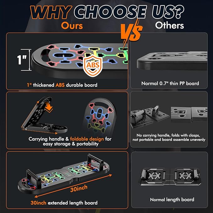 - 【Multifunctional Home Gym】:This foldable muscle max push up board is color-coded in order to provide multiple highly effective push up postures.KUYOU workout equipment home gym is specifically designed to target different muscle groups (chest, shoulder, triceps, and back), while engaging your core. Scientifically proven to activate 30% to 50% more muscle growth. Detailed instructions are provided with professional training guidance for maximizing your full body work out.
