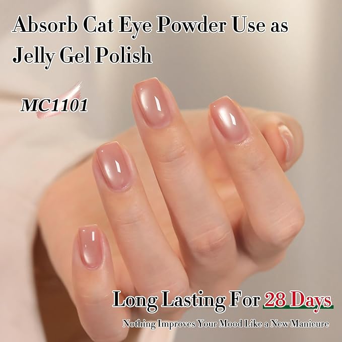 Double Rhythm Jelly Glass Cat Eye Gel Polish with Magnet 15ML Holographic Glitter Shimmer Translucent Sheer Color Magnetic Nail Polish Salon DIY at Home (Jelly Glass Nude-MC1101)