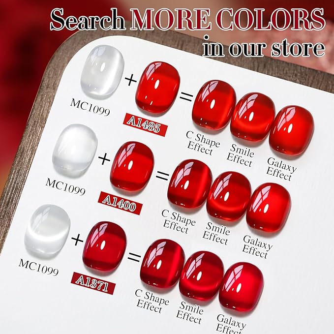 - Cat Eye Gel Nail Polish : Double Rhythm cat eye gel nail polish kit includes 1 color 15ml / 0.5 fl.oz gel nail polish. The cat eye gel can be combined with different bacse colors arbitrarily, you can get different colors nail art.You can use different base coat to creat different sytles.