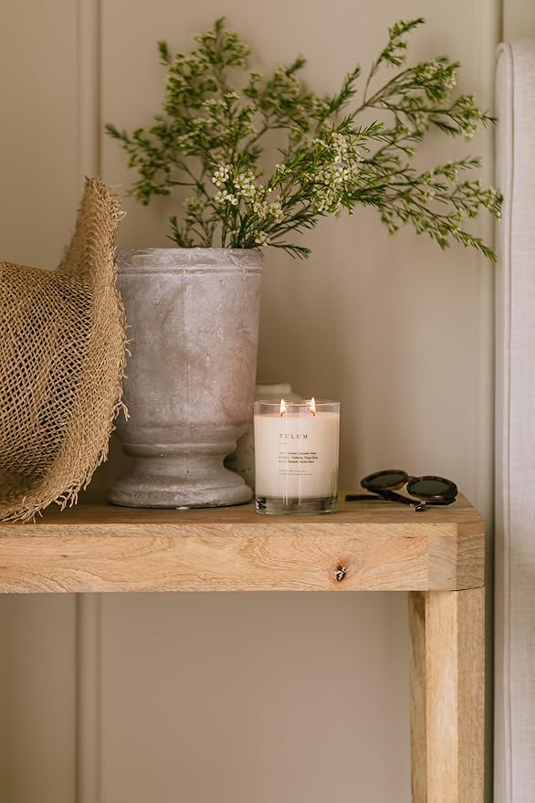 - Dreamy Fragrance: Evoking an afternoon walk in Tulum amidst the fragrant gardenia blossoms and beachside coconut palms, this candle features notes of cucumber water and coconut husk wade above a heart of gardenia and ylang-ylang over notes of rhubarb and vanilla bean