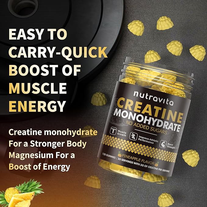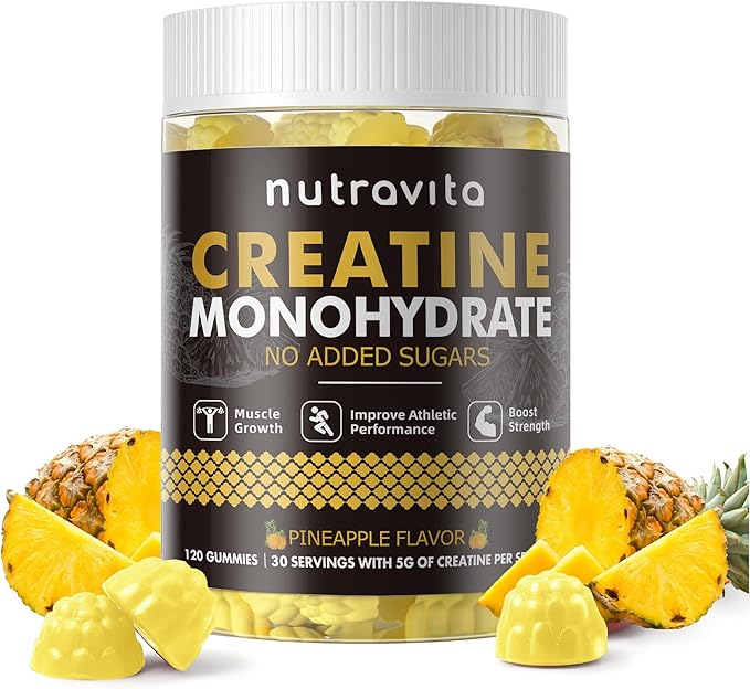 Nutravita Creatine Monohydrate Gummies for Men & Women-5g of Creatine Monohydrate per Serving - Sugar Free,Vegan,Pineapple Flavor, 120 Count