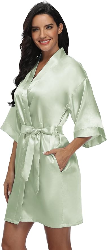 Women's Pure Short Silky Robes Bridesmaid Bride Party Satin Robes Sleepwear