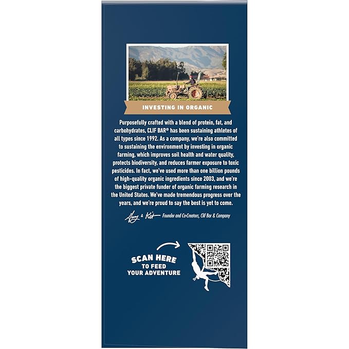 - SUSTAINED ENERGY: CLIF BAR is purposefully crafted with a mix of protein, fat, and carbohydrates to sustain active bodies before and during long, moderate-intensity activity