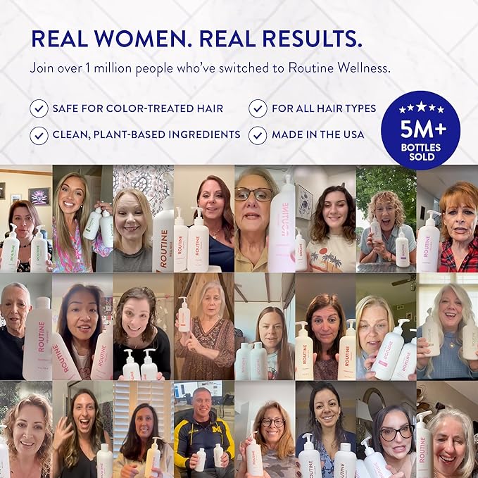 Routine Wellness Anti-Thinning Shampoo and Conditioner Set for Thinning Hair - Biotin DHT Blocker Women & Men - Color Safe Shampoo for Hair Loss & Healthier Hair - Unscented (Pack of 2)