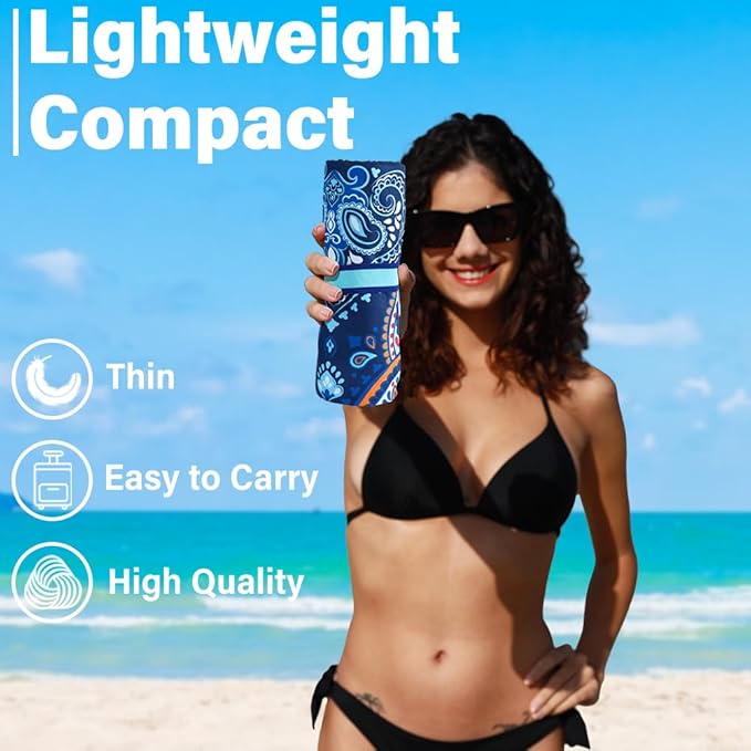 - LIGHTWEIGHT AND PORTABLE: The microfiber beach towels are made of ultra fine microfiber material that is incredibly thin and lightweight. They come with a convenient carrying strap that makes it easy to take them with you wherever you go. When folded, they are as small as a mobile phone and can easily fit in your pocket or beach bag