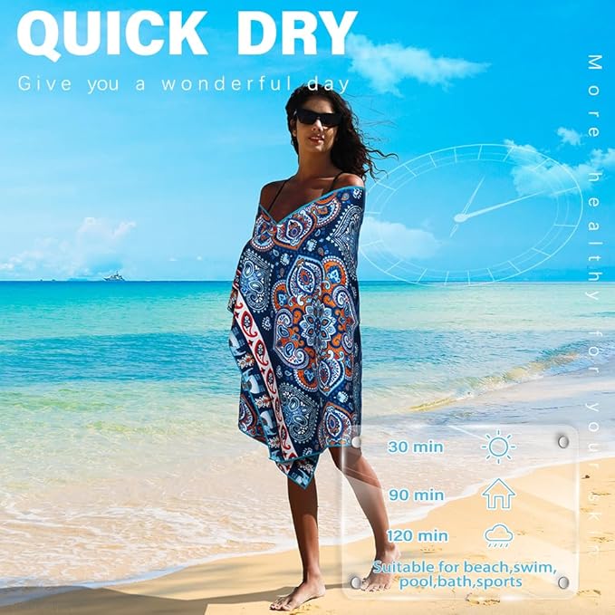 - HIGHLY ABSORBENT AND QUICK DRY: The microfiber beach towels are designed to quickly absorb water from your body, leaving you feeling dry and refreshed. Thanks to their unique microfiber construction, they dry up quickly, making them the perfect choice for a day at the beach or pool