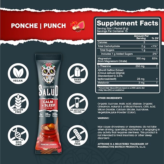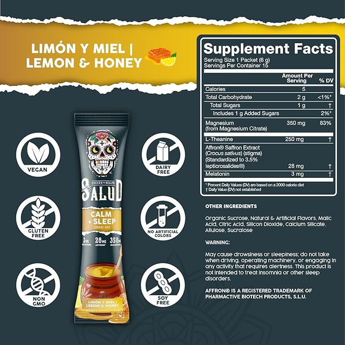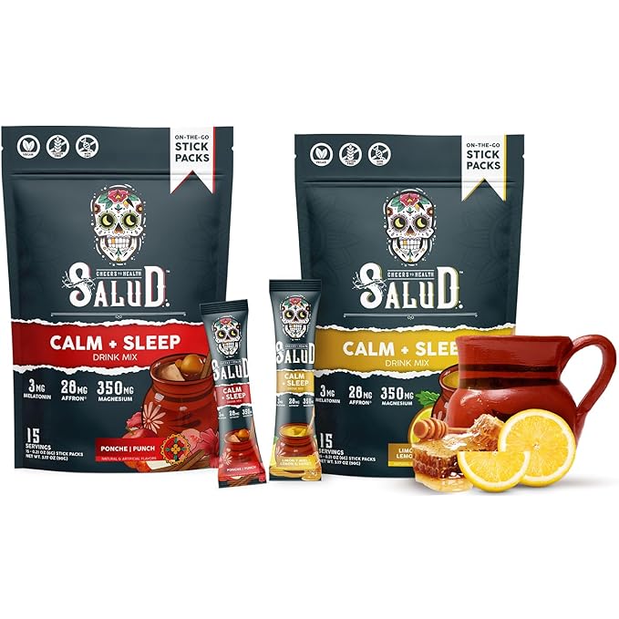 Salud 2-Pack | 2-in-1 Calm + Sleep (Punch) & Calm + Sleep (Lemon Honey) – 15 Servings Each, Drink Mix, Dairy & Soy Free, Non-GMO, Gluten Free, Vegan, Low Calorie, 1g of Sugar