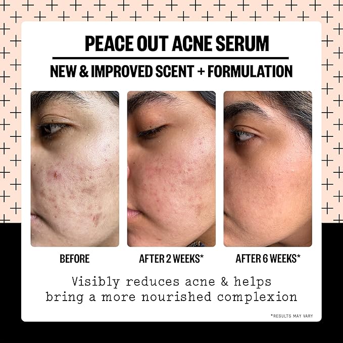 PEACE OUT Skincare Acne Serum. Daily Multi-Benefit Face Serum with 2% Salicylic Acid to Target Pimples, Zits, Blemishes and Breakouts, For Clearer-Looking Skin 1 fl oz