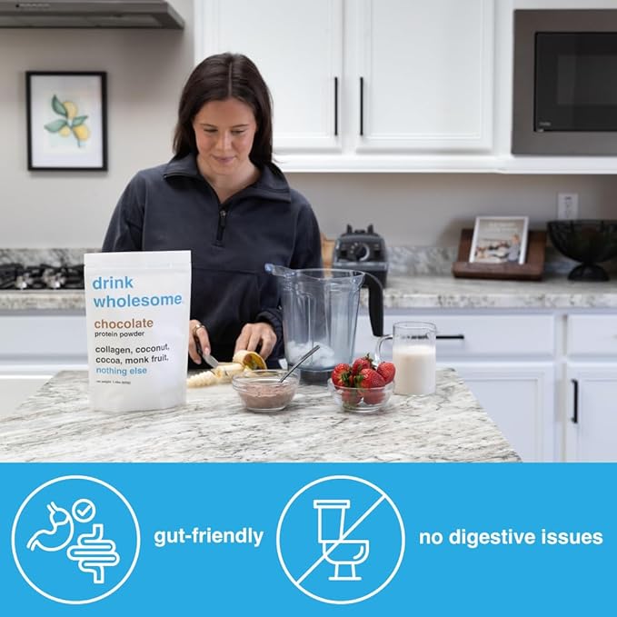 - FOR SENSITIVE STOMACHS: Drink Wholesome Chocolate Collagen Protein Powder is made for sensitive stomachs. It's an easy-to-digest protein supplement for individuals with stomach issues.