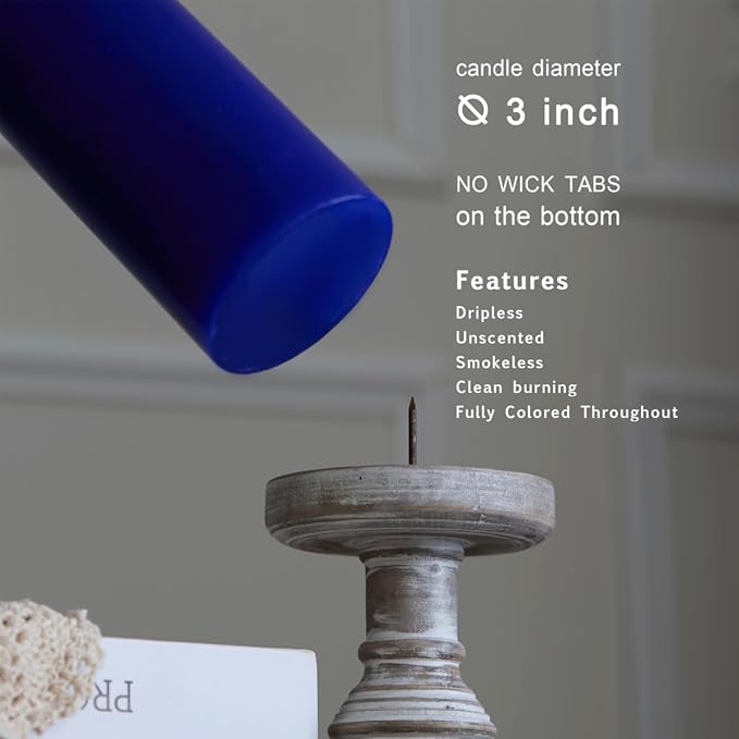 MOZEAL 3" x 6" Hand-Poured Unscented Candle, Dripless Pillar Candle Set of 3, Long Lasting Burning, Approx 120 Hours Burn Time, Rustic Country Style, for Winter Celebrations, Royal Decors, Royal Blue
