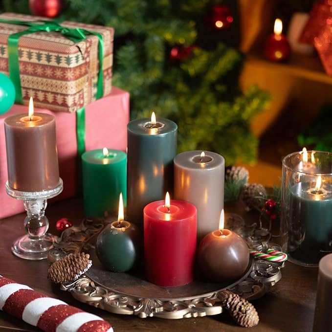 MOZEAL 4" x 10" Extra-Large Taupe Gray Pillar Candles (Set of 2), Unscented, Dripless, Smokeless, Long Clean-Burning, Tall 10 inch Large Taupe Gray Pillar Candles for Winter Elegance