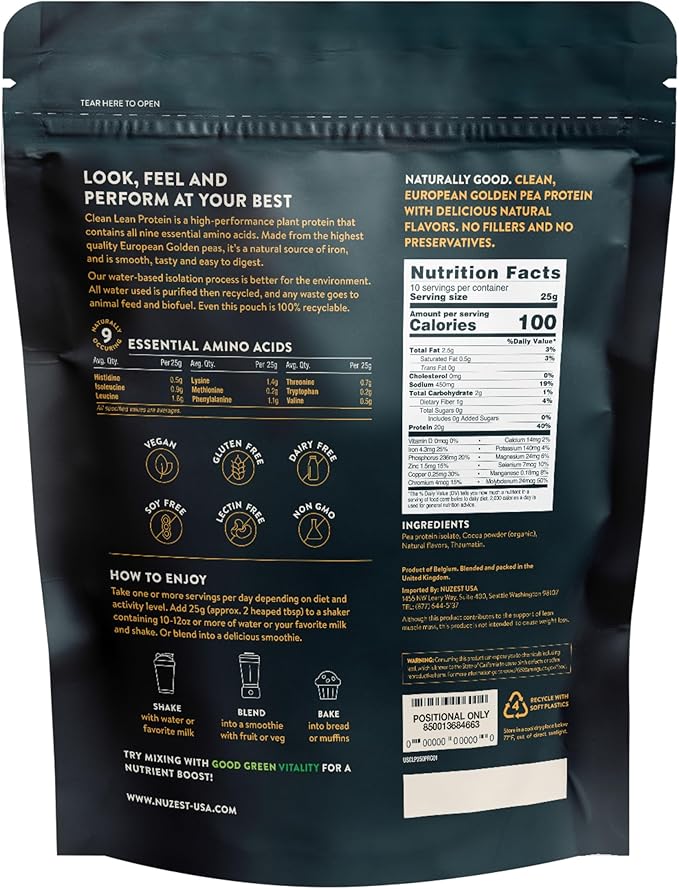 - VEGAN PROTEIN - Clean Lean Protein is all-natural and a 100% plant-based pea protein supplement supporting vitality, recovery and repair. Perfect for those wanting to look, feel and perform at their best. With a remarkable 98% digestibility rating, our product will leave you feeling comfortable all day.
