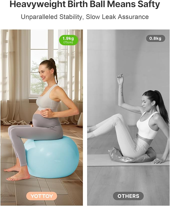- ๐ช Amp Up Your Pregnancy Workout with YOTTOY Birthing Ball! Our exercise ball is not only anti-burst but also heavyweight, weighing 1.8kg to support up to 2004 pounds. Designed to revolutionize your prenatal workout routine, our pregnancy ball offers unmatched benefits for a healthier journey. Stay ahead of the curve and embrace the beauty of motherhood with confidence!