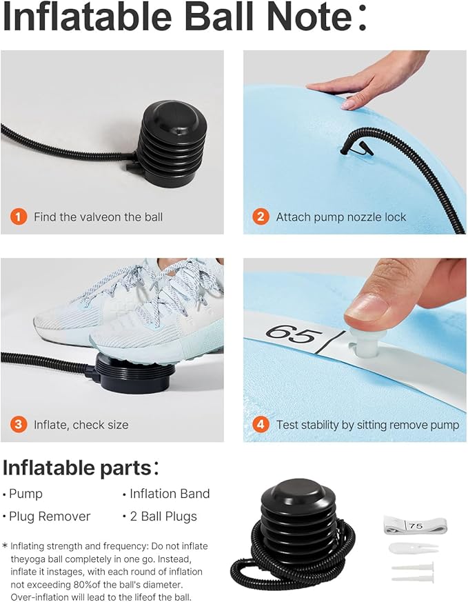 - Convenient Inflation with Included Foot Pump! Our yoga ball comes with a foot-operated air pump accessory for easy inflation. Say goodbye to worries about low-quality pumps ruining your workoutโYOTTOY ensures convenience and reliability every step of the way
