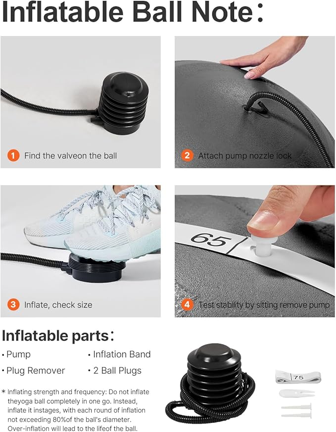 - Convenient Inflation with Included Foot Pump! Our yoga ball comes with a foot-operated air pump accessory for easy inflation. Say goodbye to worries about low-quality pumps ruining your workoutโYOTTOY ensures convenience and reliability every step of the way