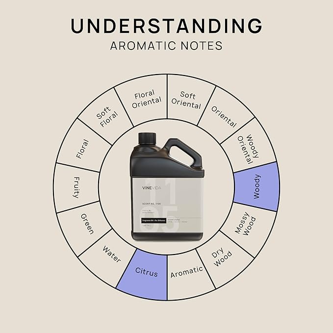 VINEVIDA [128 Fl Oz] Scent NO. 1105 Fragrance Oil for Cold Air Diffusers, Aromatic Notes of Citrus Coconut Woody, Essential Oils for Diffuser Oil Refill & Air Freshener Room Spray
