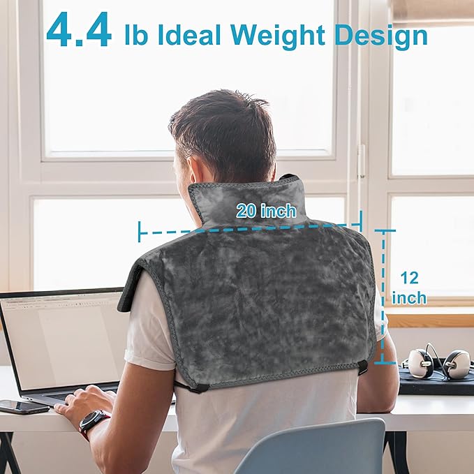 - 【4.4 lb Weighted Heating Pad】: Filled evenly with natural jade, H&B Luxuries 48"x 36" large heating pad for neck and shoulders, back is designed for better fit around your neck and shoulders, providing a comforting sensation akin to being hugged. It effectively relieves neck, shoulder, and upper back pain, eases muscle tension and soreness