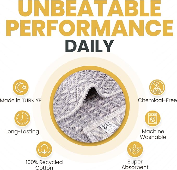 - LUXURIOUS TURKISH COMFORT: Our set of 2 washable bathroom rugs, made from 100% recycled Turkish cotton, offer plush comfort. Our non slip bath mats for bathroom are ideal for families and seniors, in 16x24 and 20 x 32 inches, feature a unique weave for added comfort and a reduced carbon footprint.