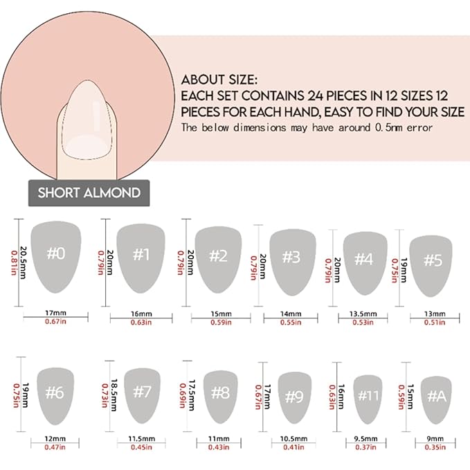 - 【What you get?】24pcs fake nails with design in 12 different sizes, 48pcs adhesive tabs, prep pad, mini file, cuticle stick. No matter the size or width of your nails, you can choose the most suitable false nails for yourself. False nails can be customized DIY trim into any length and shape you like, is great gift idea for women girls.