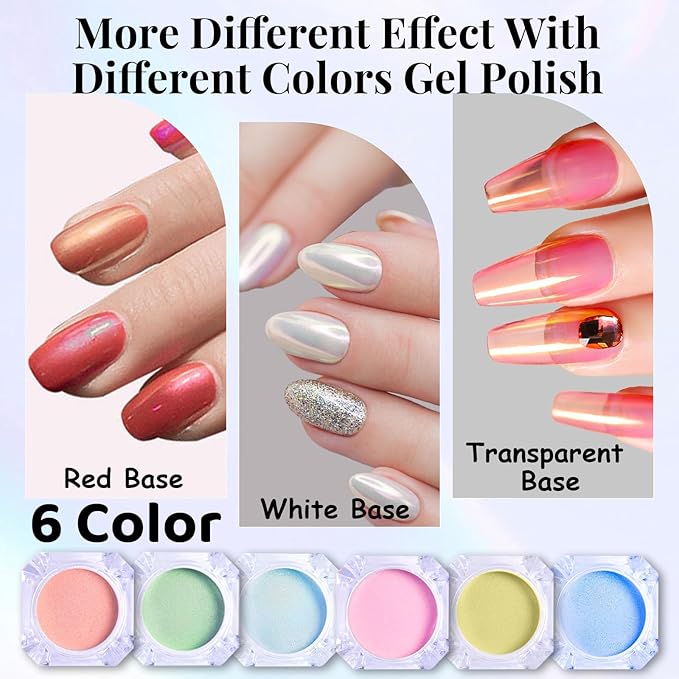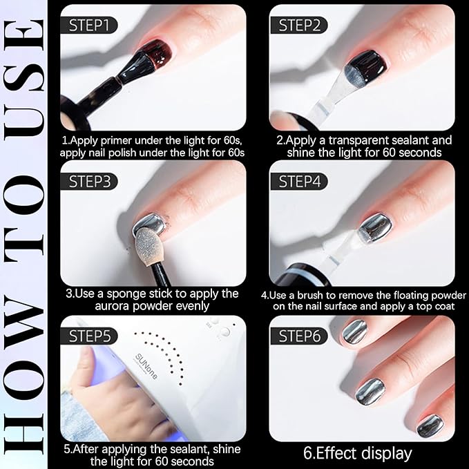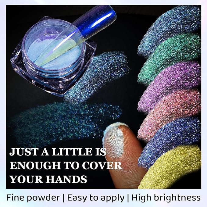 - Mesmerizing Aurora Effect: Create eye-catching nail art with MKNZOME Chrome Nail Powder. The unique aurora chrome nail powder effect adds a mesmerizing touch to your nails, making them stand out in any crowd.