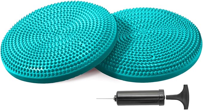 - 【Accessories and Load limited 】load limited 500 lbs. Inflator included. Pump can make adjustment very easily. Wobble cushion use in fitness training for core, balance, and stretching exercises. Also balance stability disk can be as a seat cushion for active sitting, similar to using an exercise ball as a chair.