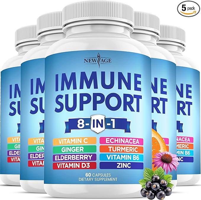 8 in 1 Immune Support Booster Supplement with Echinacea, Vitamin C and Zinc 50mg, Vitamin D 5000 IU, Turmeric Curcumin & Ginger, B6, Elderberry (8 in 1 Capsules (Pack of 5))