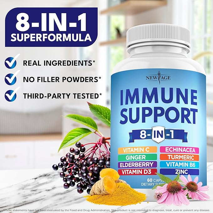 - 8 Powerful Immunity Ingredients –New Age has formulated the best potent immune support gummy packed with the top 8 immunity boosting ingredients. Sambucus Elderberry to help provide antioxidant support, Zinc citrate oxide (an essential nutrient) helps to promote immune function, we’ve added Vitamin D3 5000 IU, Vitamin C, and Echinacea to bring you a powerful elderberry supplement great for any season