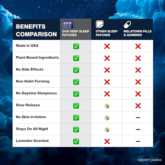 - SLEEP AID THAT WORKS – Deep Sleep is a transdermal patch that improves sleep quality without causing morning drowsiness. With a blend of clinically proven and time-tested herbal extracts and melatonin, our sleep aid provides a reliable and effective solution for achieving restful sleep every night.