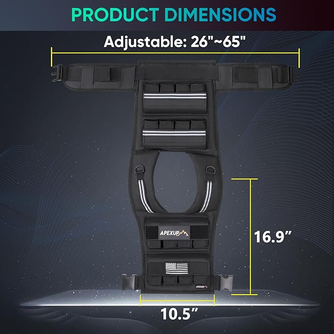 - [ENHANCED EXPERIENCE] APEXUP Weighted vest features removable iron blocks that eliminate the risk of sand leakage, offering you more confidence and ease during workouts. The adjustable waist belt and padded shoulder straps ensure a snug fit and prevent bouncing or slipping during dynamic exercises.
