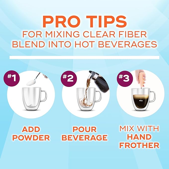 - UNFLAVORED, MIXES CLEAR with NO GRIT: Metamucil Clear Fiber Blend is easy to add to your daily routine. Try Clear Fiber Blend in your coffee, smoothies, juice, tea, and more!