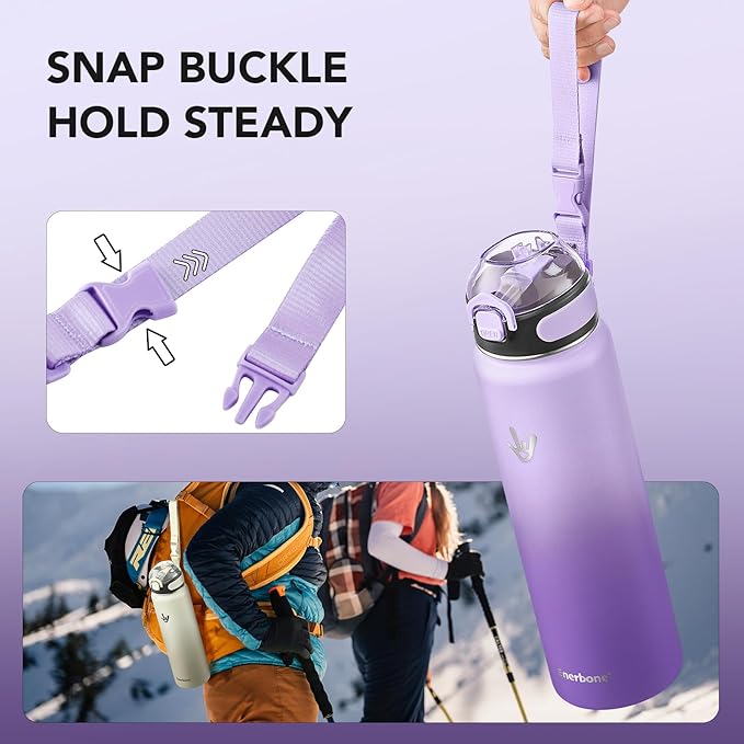 Enerbone 32 oz Insulated Water Bottle, Stainless Steel Bottle with Carrying Strap, Double-Wall Vacuum Insulation Design, Leakproof Sports Bottle with Straw, Keep Drinks Cold or Hot for Hours