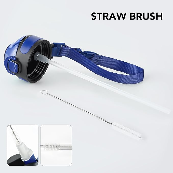 - Humanized Design: The one-hand operation button allows for easy access to water. Highly suitable for boys and girls, and all ages. The flip-top lid of the insulated bottle is used a secure lock, making it dust-free and leak-proof. The included straw brush makes maintaining your bottle's cleanliness uncomplicated and efficient.