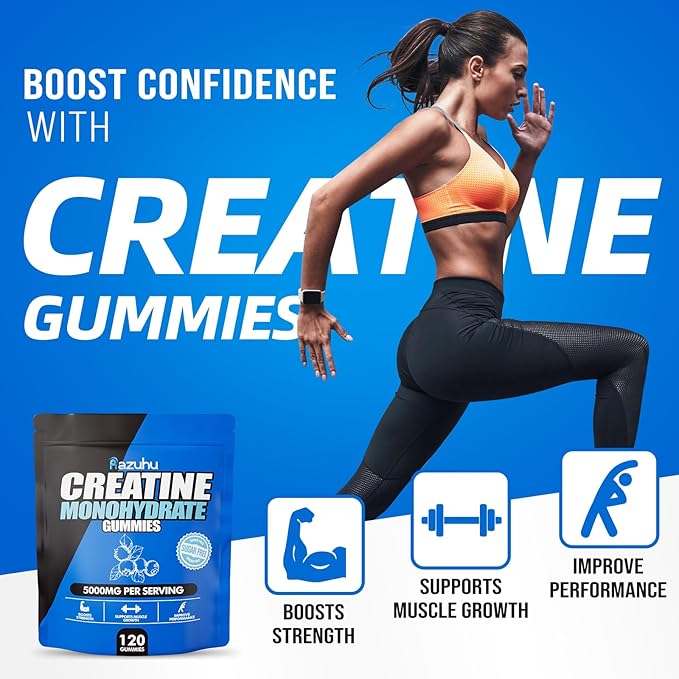 - Convenient & Delicious:Put a bag of gummies into your gym bag or pocket for quick and easy creatine supplementation anytime, anywhere.Our creatine gummies for women and men are a great- tasting alternative to traditional creatine supplementation—5g per serving,with a delicious natural blueberry flavor for an unparalleled workout experience,so you can trust that each bite is delivering maximum benefits to fuel your fitness ambitions