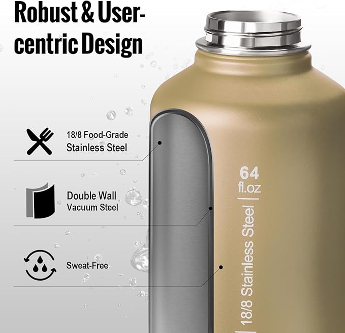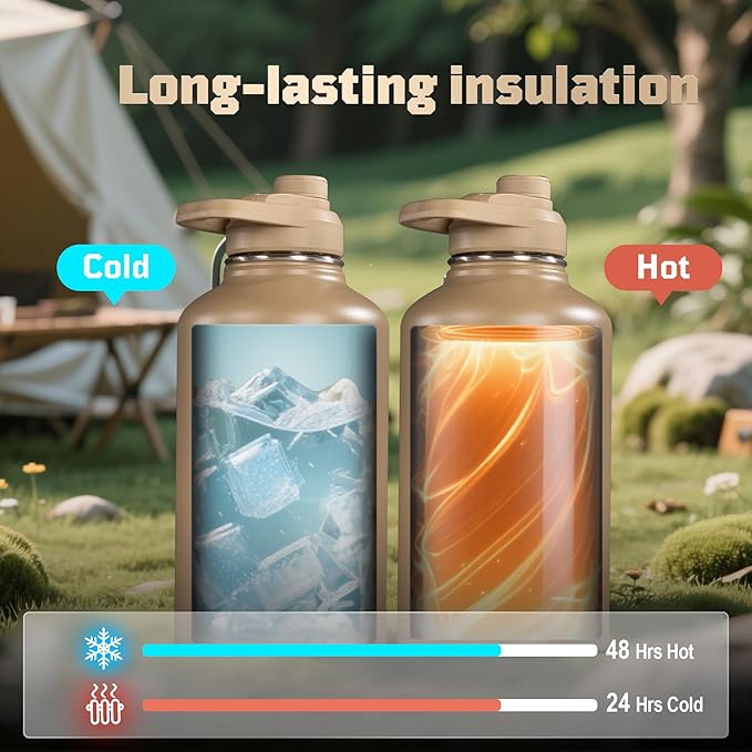 - Hydrate All Day Long: OneTigris 64 oz Water Bottle with its impressive capacity, this powerhouse ensures you stay hydrated all day long, eliminating the need for constant refills. Whether you're out on an adventure or conquering your daily routine, our 64 ance water bottle keeps you fueled and focused. Stay refreshed, stay energized, and stay ahead with our half gallon Water Bottle.