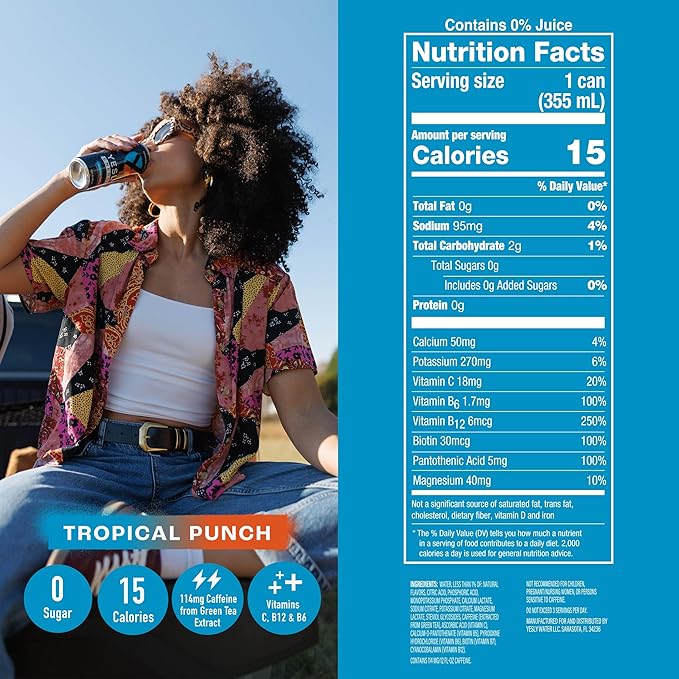 - VARIETY PACK: Tropical Punch, Mixed Berry, Green Apple & Lime: Enjoy the refreshing taste of crisp green apple in every sip. This naturally flavored sparkling energy drink delivers a smooth, fruity burst with just the right balance of tartness and sweetness. Whether enjoyed chilled or at room temperature, it’s a great choice for a revitalizing refreshment any time of day.