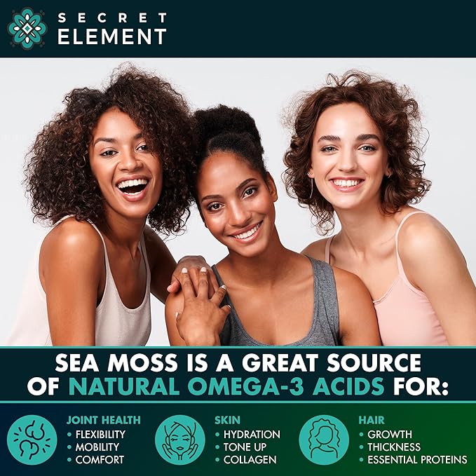 - Beauty & Aging: our real Sea Moss supplement benefits skin, hair, nails, muscles, joints, and knees, as it strengthens tissues and promotes collagen production, while providing antioxidants for protection against free radicals, keeping the age at bay