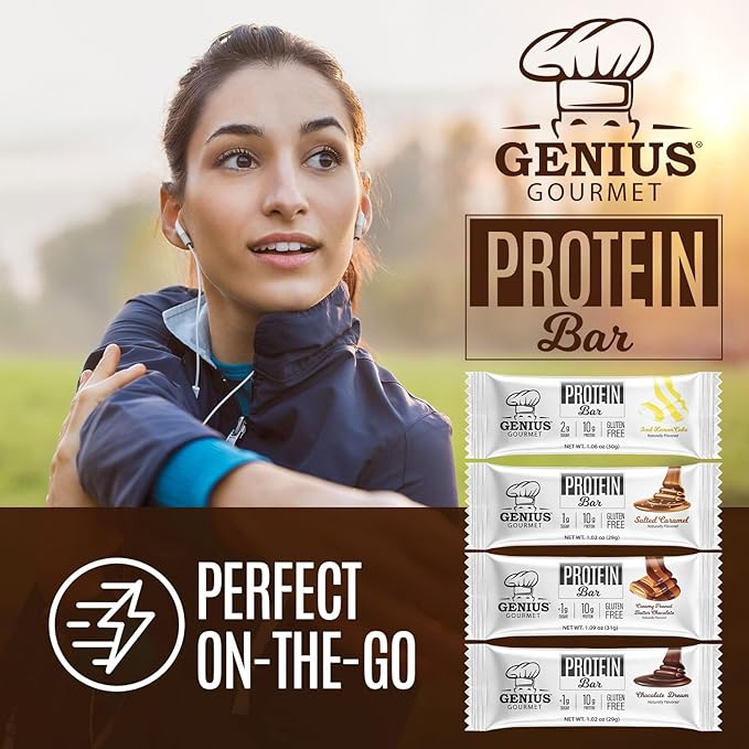 - SATISFY MIDDAY HUNGER: Granola bars, chocolate candy, energy bars, and snack packs typically fill the snack shelves, but Genius Gourmet's Protein Bars stand out as the ideal low-sugar, low-carb snack to stash in your purse, work desk, or workout bag, or to include on your snack shelf. Enjoy a midday protein snack without the guilt! The real challenge? Keeping them hidden so you don't have to share!