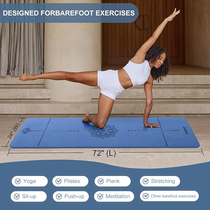 - Upgraded TPE Material: Crafted from premium TPE material, this big home gym mat is free from phthalates and has no unpleasant smell. Compared to NBR and PVC mat, TPE has a nice density. It provides ample cushioning without excessive sinking, aiding in the maintenance of balance during your practice