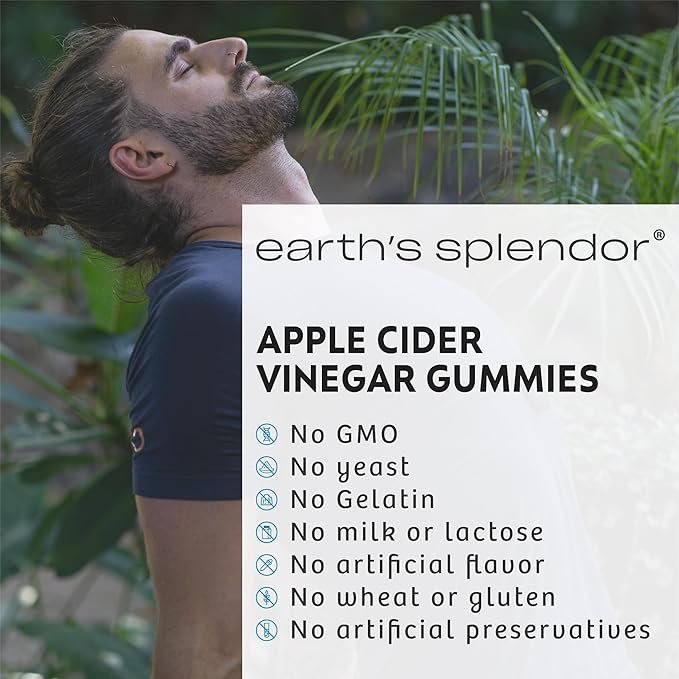 - Antioxidant Support – Enjoy daily antioxidant benefits with each gummy. Earth's Splendor Apple Cider Vinegar Gummies help support your body’s wellness while tasting great in every bite.