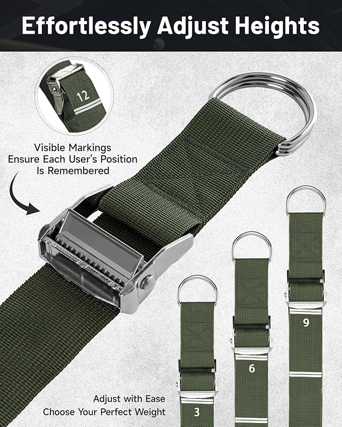 - ๐ ๐๐๐ฌ๐ฒ ๐๐๐๐ฅ๐ ๐๐๐ฃ๐ฎ๐ฌ๐ญ๐ฆ๐๐ง๐ญ: We've upgraded the connection straps on our product to include scale adjustments. This feature allows you to easily adjust the length of the bands according to your height and strength level, eliminating the need for constant strap adjustments during your workouts. With our improved design, you can quickly find the perfect fit for each training session. Say goodbye to complicated setups and hello to hassle-free workouts!
