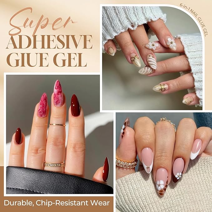 - 🌟【6-in-1 Multifunctional】Our upgraded 6-in-1 multifunctional nail glue is not only used for nail tip adhesive but also can be used as a base gel, blooming gel, flat rhinestone glue, slip solution, and color-mixing gel! One bottle unlocks endless nail art possibilities! Tips: This nail gel glue is for use with clear nail tips only. Not suitable for solid press-on nails
