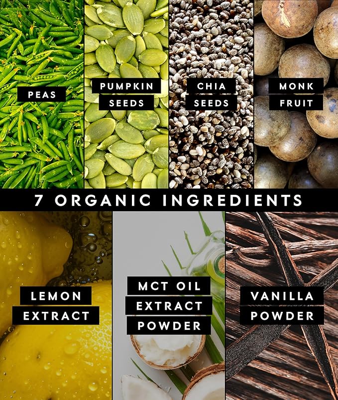 - Certified USDA Organic: Trust in the integrity of our plant-based vegan protein powder, certified USDA Organic, non-GMO, and vegan-friendly. Our straightforward label and simple ingredients ensure transparency and quality. Protein sourced from all organic pea, pumpkin seed, and chia seed.