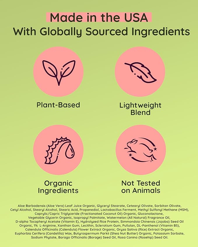 - NOURISHING ORGANIC INGREDIENTS – Infused with shea butter, aloe vera, and jojoba, this lightweight moisturizer soothes, hydrates, and protects delicate skin—free from parabens, PEGs, and artificial fragrances.