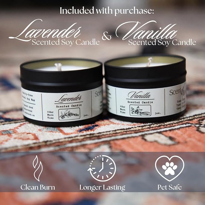 - DEDICATED SUPPORT: Scent Desk candle wax warmer set includes 1 wax melting lamp, 2 soy candles (vanilla and lavender, and 2 halogen heating bulbs (50W). If you experience any problems during use, please feel free to contact us. We will work with you to immediately solve the problem.