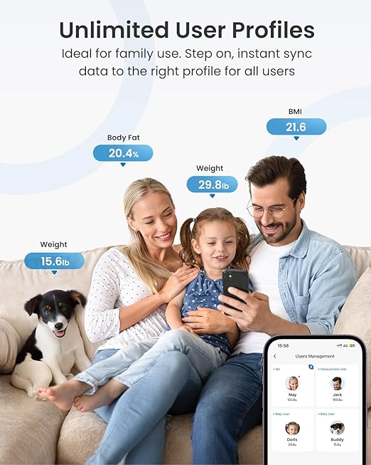 - Unlimited Users: The smart weighing scale supports unlimited users, managing each person's data individually and providing a personalized health tracking experience for every member of your household.