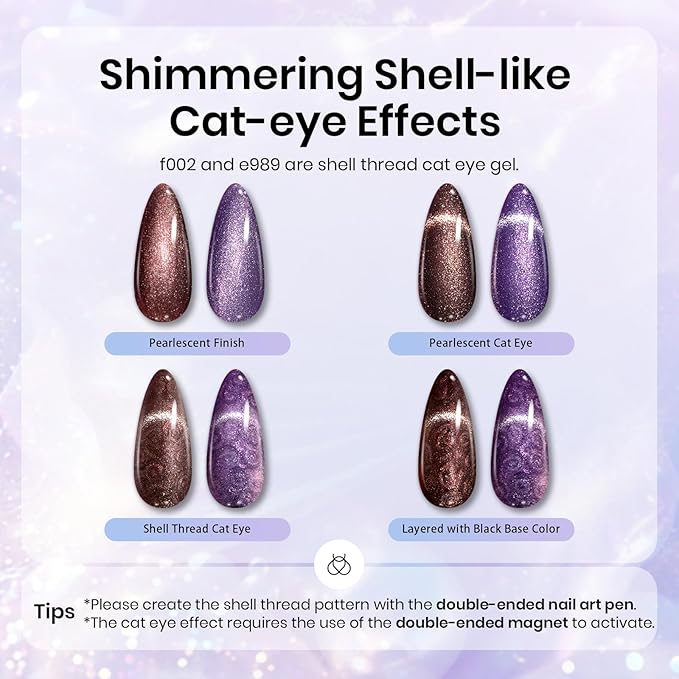 - Glitter Swirl Thread: This Pearl Shell Gel Nail Polish with mermaid unique design, This is 2-in-1 shimmer gel, not only can be pearl gel polish but also can be swirl thread nail gel, is available for any various shape, such as swirl, slash, curve ,etc.