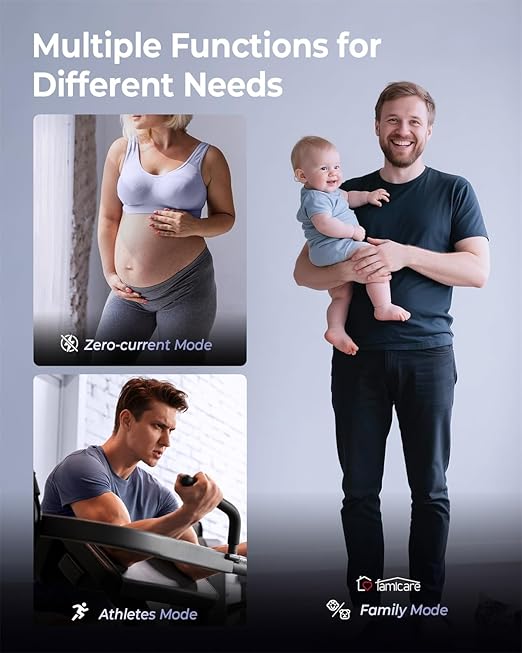 - Friendly Features: 1) Unlimited Users makes it convenient for the whole family; 2) Zero-Current Mode ensures a safe weighing option for expectant mothers; 3) Family Mode tracks the growth of babies or pets; 4) Athlete Mode povides more accurate and suitable data for athletes